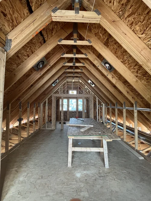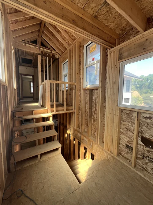 Addition & significant renovation of the Keyes Avenue Residence is well underway! Check out the BIG moment (frame). Insulation at the plate with gwb and siding on deck.